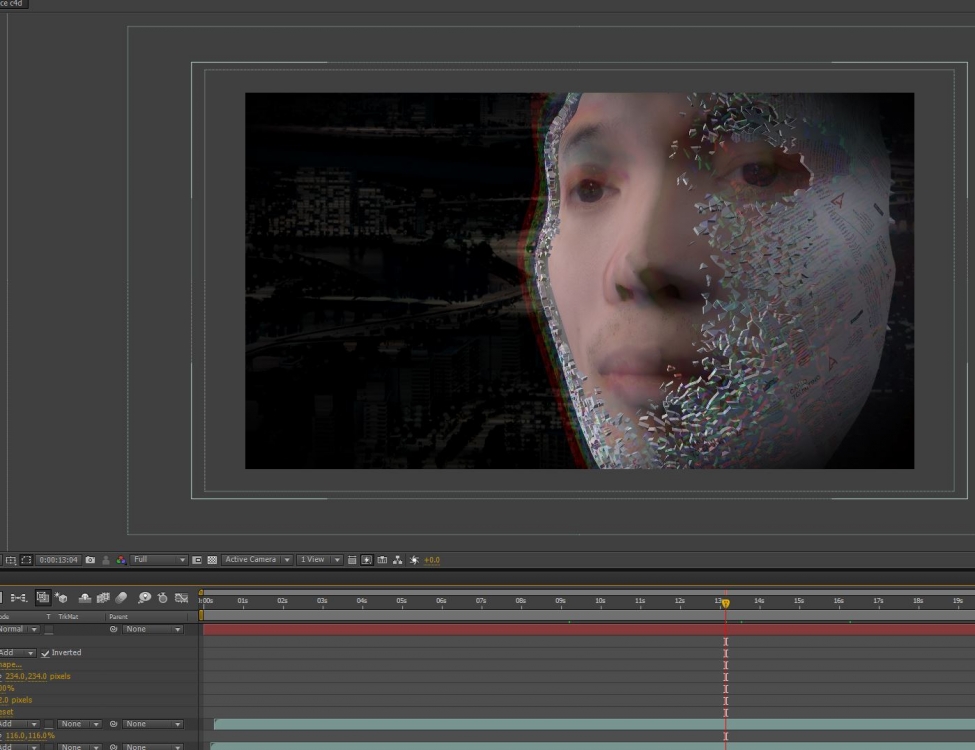 Method: A 3D animated sequence utilizing facial photogrammetry on my face, and animation/camera techniques in Cinema 4D and AE.