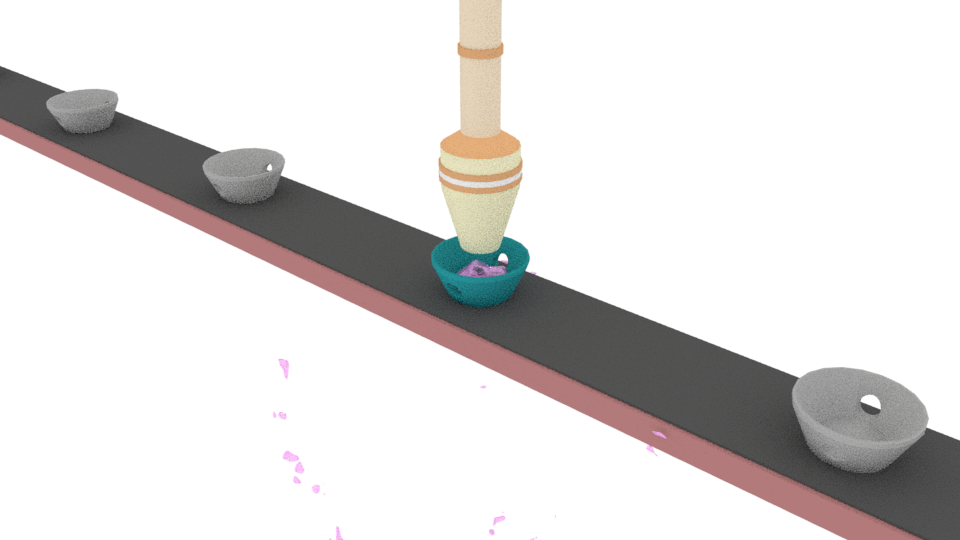 I modelled the entirety of the 3d assets within Maya. I also used a water physics simulator from Bifrost that helped emulate the animation piece of water flooding from the pipe into the bowl, and have it drained out from the holes placed in the bowl. I would then set up a lighting rig to light up the scene and also render the entire sequence using the Arnold renderer to produce the final animation piece.