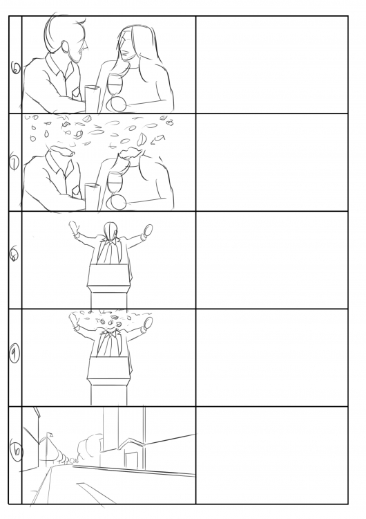 I mainly want to express such a story through the storyboard: With war, pollution etc. These factors destroy human society. God tried to improve this phenomenon-human being cannot lie, and once they lie they die. Then God found that all the people in the world died. I mainly want to express that human civilization is based on lies, and humans cannot avoid lying.