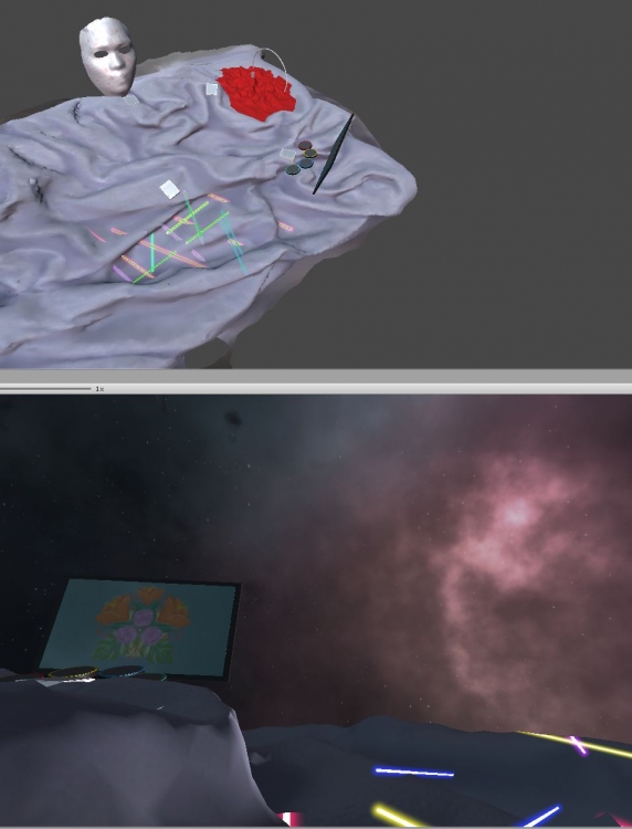 An interactive first-person perspective, surrealistic museum on a planet made from a conglomeration of my APD responses and projects.