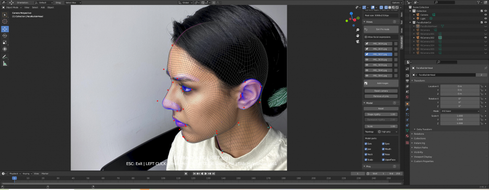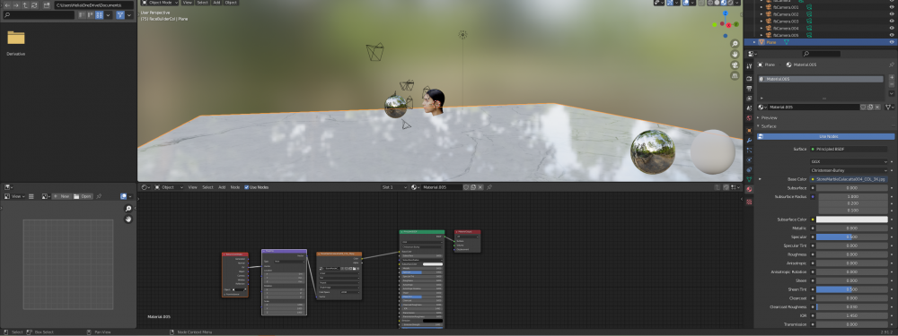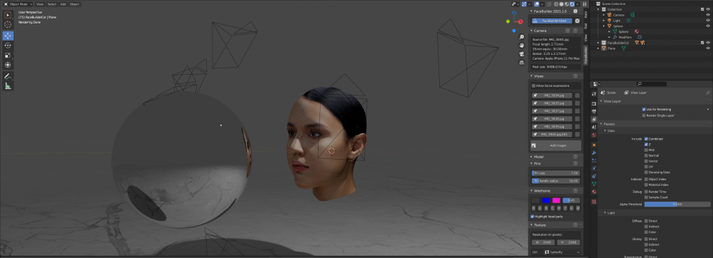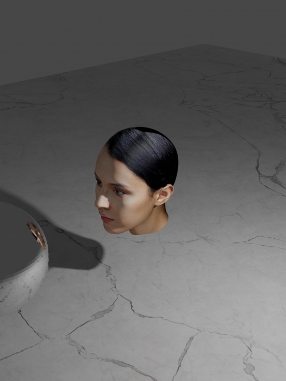 I created a model of my face by using 7 photos from different angles to build a model with Facebuilder in Blender. After that, I created a marble plane added lights, made a spherical mirror and looked at it from different angles.