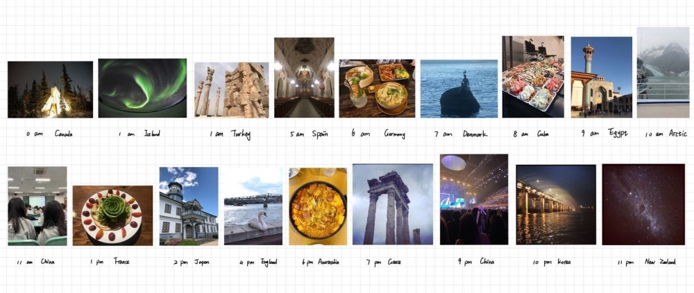 I still remember that before covid-19, we were free to travel around and experience the life and culture of different countries. To commemorate those good old days, I contacted my friends (some in Germany and some in LA, and so on) to share their life and travel stories with me and put photos on the timeline. For those who I couldn't get in touch with immediately, I looked their social media and found some life photos they shared. To my surprise, we almost filled the entire timeline.