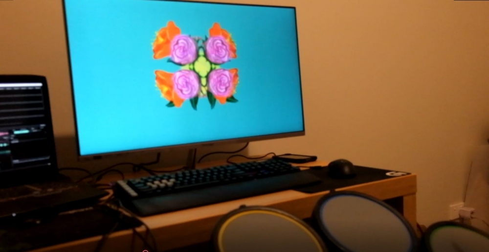 Flower Beats is intentionally not projection-mapped, as my focus was to figure out a process and to demonstrate the combination of the Rock Band Drums kit, its communication with various software, syphoning everything to Resolume, then the human interaction. Additionally, I combined various drum-hit sounds, chimes, and cymbals to the inputs slightly deviate from what one would expect from hitting on a drum kit. Despite being familiar with Resolume as a VJ software, I still encountered technical challenges in making it communicate with the drum kit, its midi inputs, as well as the parameters of each input to be translated into basic transform animations. I could have also made all the animations simply react to sound in Resolume, but then it would be a chaotic cascade of simultaneous animations instead of each floral element having a corresponding drum hit input. I’m very pleased with my end-result, and I can pinpoint areas in my process in which I could develop further, as well as translate the concepts that emerged into a more resolved project. In the end, I felt that I tinkered and grappled with a combination of various software, to produce an output that allowed for further tinkering or even more so, the act of play. Everything in the video is when I let my wife, nephew, and niece tinker and play with Floral Beats. Admittedly, I had to cut parts of my nephew and niece playing with it too, as it didn't take long for them to quarrel taking turns on it. I suppose they surprisingly had more fun than I thought they would.