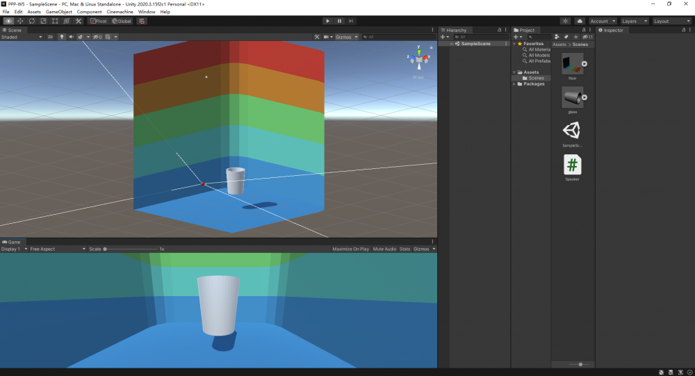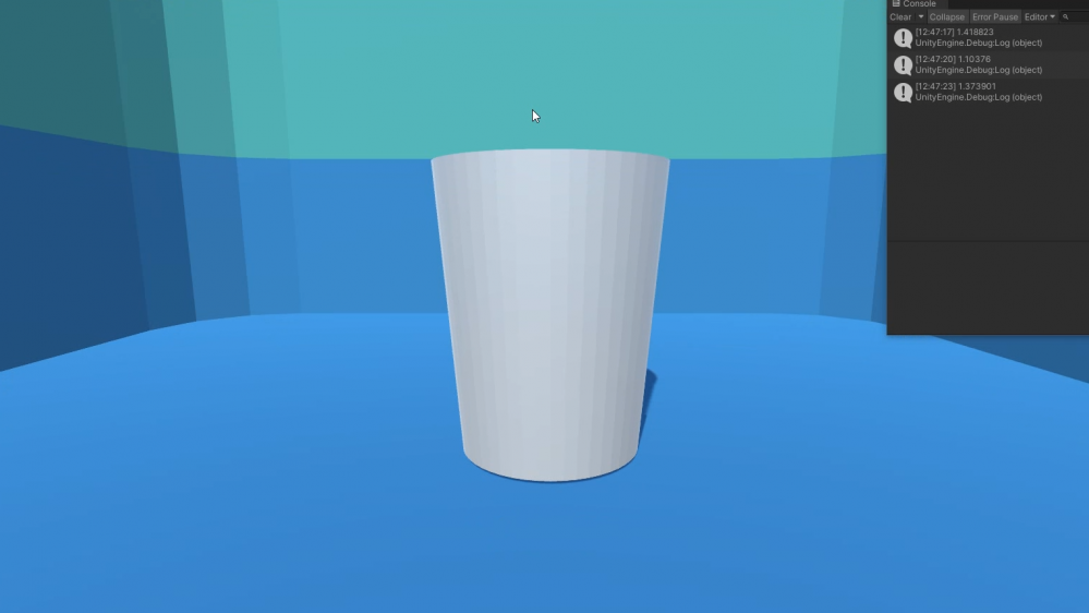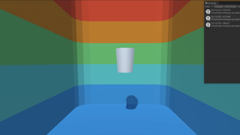 Scripting in Unity to capture sound data and slice it, and let the computer analyze the max volume of it. Then, the volume of the sound, also, the strength of force, is expressed by the height of the cup.