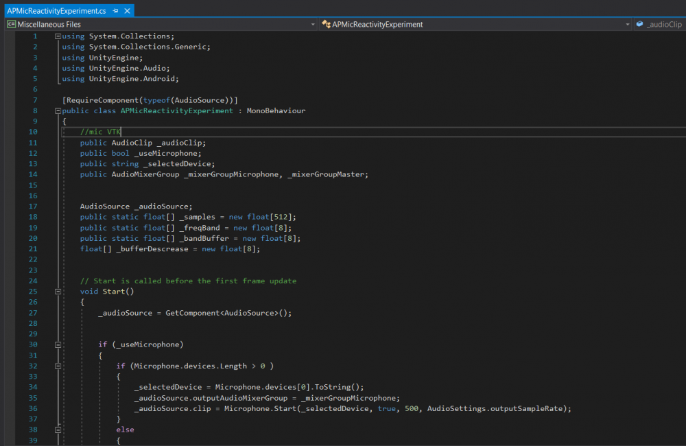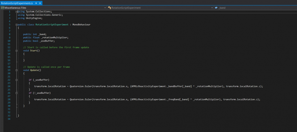 I did have several struggles when creating my interactive that weren’t entirely resolved, namely that whenever I’m coding, I’m flying by the seat of my pants through a tutorial and then making moderate changes to it where I can. For example, the tutorial I used was creating bars that rise and fall on the Y axis according to 8 bands dividing the spectrum of Hertz being processed. One problem with this is that the pinwheels respond to all sound, and while I tried to pin down exactly how to refine the input to just wind sounds, I honestly don’t yet comprehend the tools I’ll need to do that. Another issue was that Hertz naturally scales up and then back down to zero as one speaks, as a sound fades in and out. This meant that, like the tutorial’s rising bars which are supposed to scale back to zero, my pinwheels turn and then turn back, unlike real pinwheels do. I think I managed to hide this pretty well in the final project, but it still presents a coding issue for later. Both of these issues can be overcome by continuing to study the fundamentals of C# in future. Overall I still consider it a success for my first non-game 3D interactive.