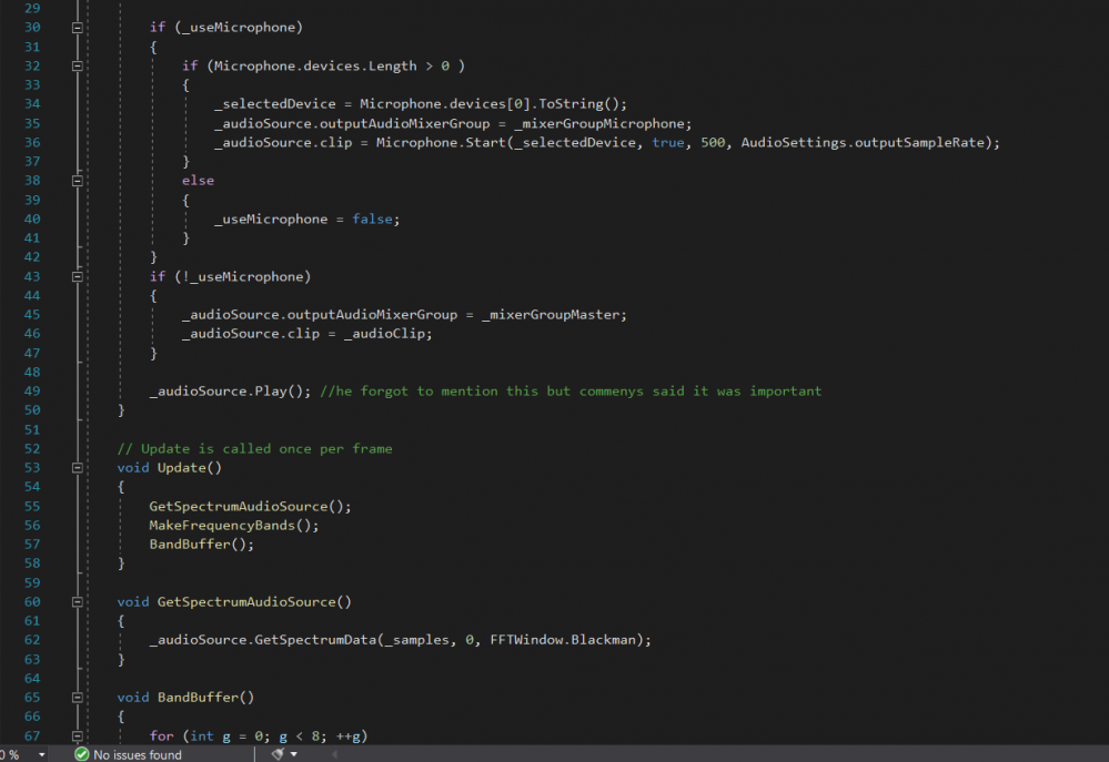 Followed a tutorial on how to make audio-bars that respond to microphone input