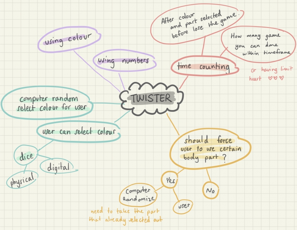 Hasbro Gaming - Product Demo - Twister This game came right up into my mind after this week theme had introduced. I am so in love with this game. It is very fun to play with friends and encourage body movement a lot. So I went to see if there anyone who makes this into digital and I found Hot Mess - Digital Twister with a twist! (Requires MakeyMakey). This has the same gameplay as I want to do but a bit different. Instead of colour, they use number and this limit users an ability to choose the colour position they want like real Twister game.