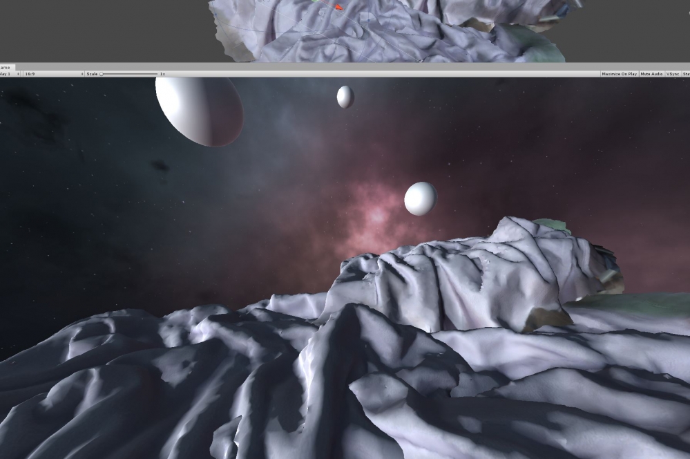 In creating The Invasion of Planet Blanket, I wanted to stay true to the physical material elements of the physical blanket. Its texture, colour, and the topography of the crumples. I intended to create the landscape without editing the 3D model whatsoever, and trusting what may result in the 120+ photos of the photogrammetry process. I added the falling white balls to highlight the topographic landscape as the balls hit, and roll in the environment with the use of the 3D blanket’s mesh colliders and Unity’s gravity physics. The addition of a starry-cosmic skybox into the scene intends to elevate the atmosphere of the otherworldly exploration of something as simple as a crumpled blanket. If I were to take this a step further, I would hope to add cotton or grass-like protrusions on the blanket instead of just a texture. Adding other household objects in place of the falling white balls could also be something worth exploring. Translating physical objects and spaces into the digital gameplay levels and environments using photogrammetry is something I think plays with the idea of mind and subjective play. The re-imagination or fantastical possibilities of photogrammetry in found object level design is something I’m very interested in engaging with for future project ideas.