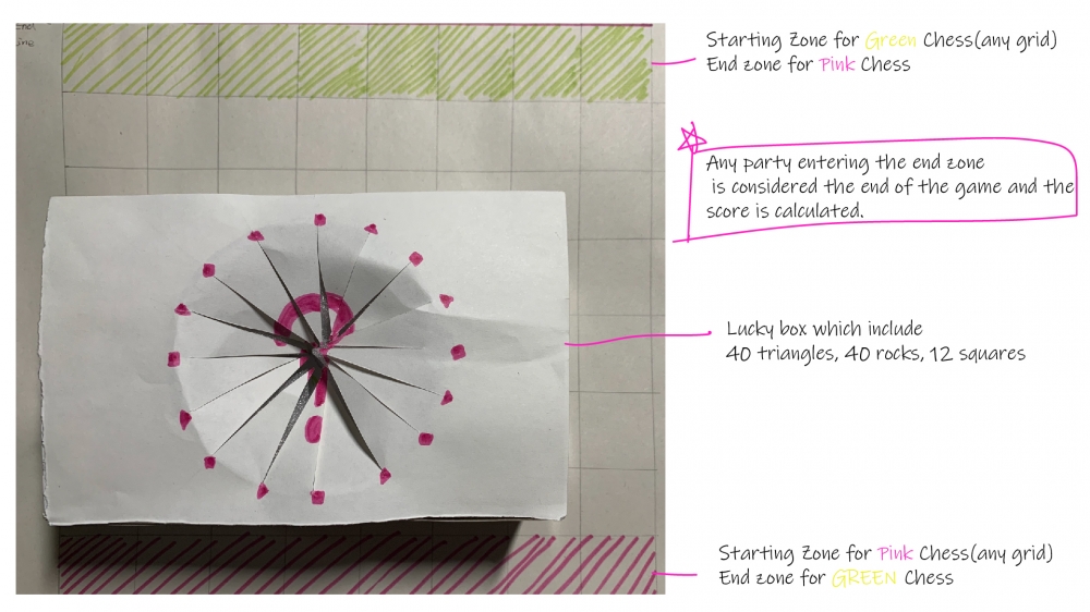 Next, I drew a checkered chessboard of 8 by 8. I followed the basic rules set at the beginning to test the direction of this game and specific play methods. I can only continue to design the game when I am restricted and improve the logic and playability of the game.