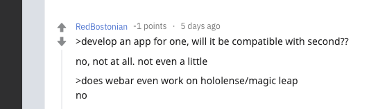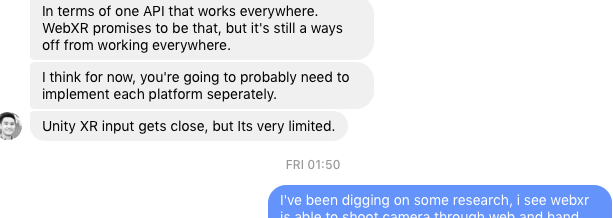 most of forumns and personal convo's have told me webxr ( webar ) is not ready at all to compete on that stage.