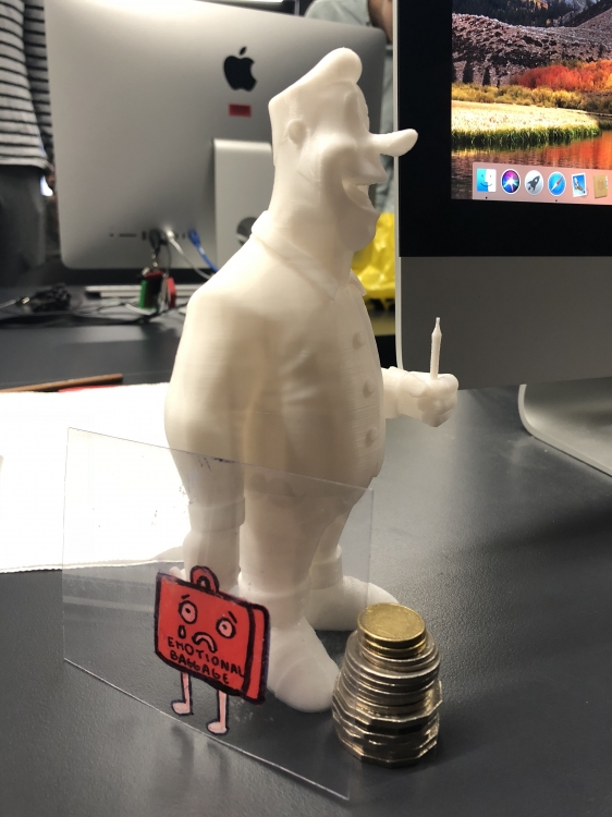 Happy rich businessman with emotional baggage