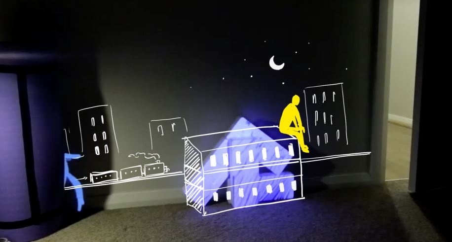 In this experiment, I wanted to investigate how the concept of stillness may perhaps be used in an iteration of my project. Using the scene of Styrotumble as a basis, I sketched and conceptualized on a cityscape scene, with the human-like character perched above one of the buildings. I intended to give the scene a few subtle movements such as the twinkling of stars, fading in-and-out of windows, as well as a passing train. Very minimal movement of the character could also lend into the subtlety of stillness. Unfortunately, due to multiple schedule conflicts, I was unable to further polish and add onto the scene as I initially intended. In light of this, Istill tested mapping the city scene onto some polystyrene blocks. I had to use more projection-mapping techniques than usual, as my original scene in Toon Boom Harmony wasn’t aligning properly with the polystyrene blocks and vice-versa. Looking a bit bare without much movement in the animations, I tried to place in physical toy cars on the base of the buildings as foreground. I appreciated how the building’s light projections appear on the reflective surface material of the toy cars. This gave the city scene a sense of mixed reality, and interaction between the light-projections and the physical objects in its proximity.