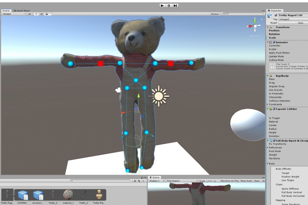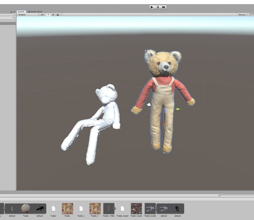 My processes and failed attempts at Leap Motion+Unity+IK+rigging from a photogrametry model of my wife's childhood teddy bear.