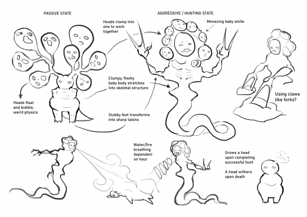 This week I researched into animal behaviours and tried to brainstorm unique behaviour/interaction for my own creations.