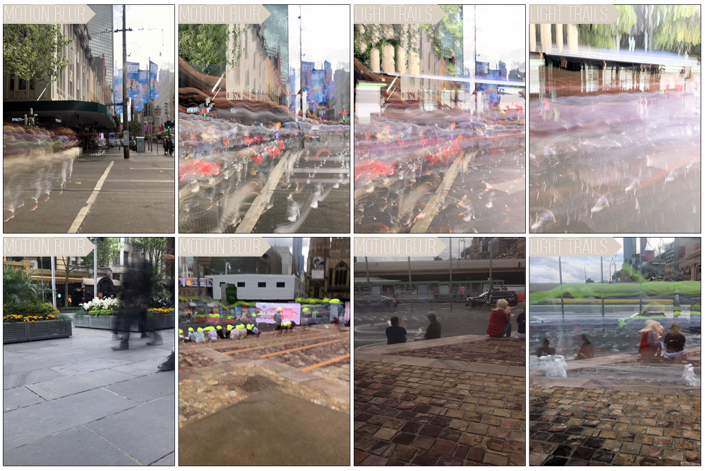 Overall I think the exercise was novel and fun, but didn’t live up to expectations. The weather on the day we went into the city was quite overcast and as it was the middle of the day on a Monday there wasn’t a huge amount of activity. The difficulty in trying to do this without a tripod also contributed to the lacklustre results, finding spots that had a good amount of movement as well as a still point to focus on was harder than we initially thought it would be. In hindsight, I’d bring something out that could be used to hold my phone in place. As we didn’t have that, there was an excess of images that I didn’t even bother adding to the examples shown above as they were too blurred and out of focus.