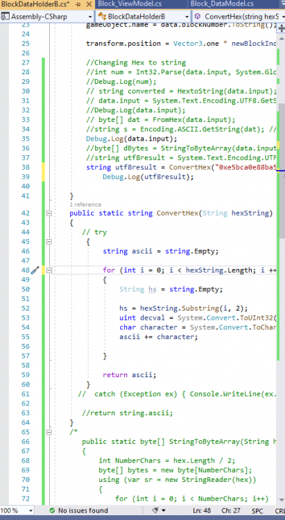 After achieving to get properties in unity from blockchain, I'm looking at converting input - This is the property where you can send text messages embedded in blockchain. - HEX input to ASCII/UTF-8. .