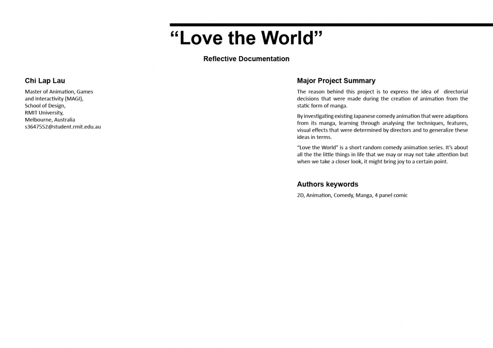 Attach with the reflective document for everyone who interest in the makings of "Love the World"